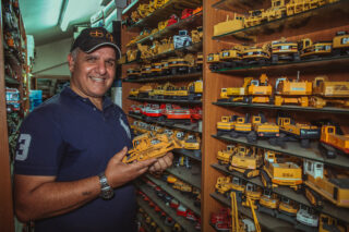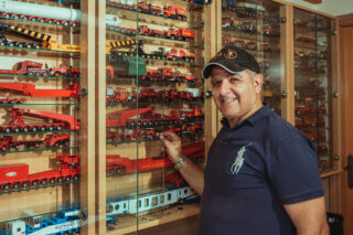 There’s not much that Modestos Meletiou hasn’t driven in his time. From bulldozers and forklift trucks, through low-loaders and fuel tankers, to helicopters and commercial jets. His current job during the summer is piloting a fire-fighting plane to tackle wildfires over his native Cyprus. But whatever he’s doing during the day, he always comes back to the same thing at night: assembling die-cast models. He has over 6,500 at present, including what’s believed to be the world’s biggest collection of 1:200 scale model aeroplanes. He also has huge numbers of miniature scrapers, concrete mixers, mobile cranes, dumper trucks and all sorts of other construction vehicles. But the most treasured part of his collection is hundreds of low-loaders, predominantly in the colours of UK companies.