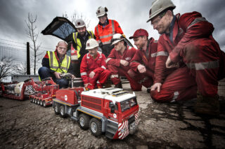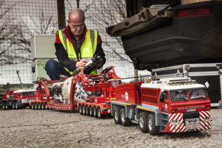 Harrison, who’s now 58, has been building RC models for about 15 years. He started off with boats, before turning his attention to trucks, and, particularly, heavy haulage vehicles. Until he started his Trojan project, his biggest model had been a double-swan-neck girder trailer carrying a transformer, complete with a jeep dolly, steerable rear bogie, and no less than four Scania tractors fitted with Palfinger cranes, two pulling and two pushing.
