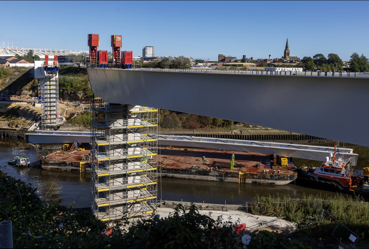 MAMMOET HAVE SUCCEEDED IN PERFORMING THE HEAVY LIFT AND HEAVY TRANSPORT OF ALL FOUR NEW WEAR FOOTBRIDGE STEEL SECTIONS. THE NEW FOOTBRIDGE WILL PLAY A KEY ROLE IN RIVERSIDE SUNDERLAND – CONNECTING PEDESTRIAN AND CYCLIST TRAFFIC FROM THE CITY CENTRE TO THE STADIUM OF LIGHT.