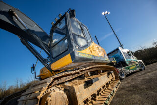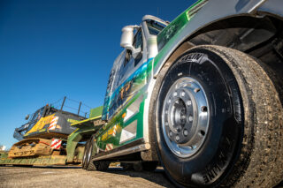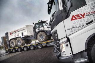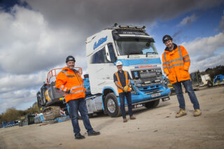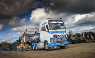 Collins Earthworks Group is well known for its strong allegiance to Volvo products. Its transport division, which includes tippers, heavy tractor units for the low-loaders and even the chassis for its road sweepers, all come from the Swedish manufacturer. But it doesn’t end there, the construction equipment fleet is dominated by Volvo – excavators, dump trucks and graders. If Volvo makes it, Collins almost certainly operates it. The transport division is responsible for shifting all of this equipment, along with other non-Volvo equipment, which includes bulldozers, tracked crushers and screening plant, soil stabilisation machines and a host of other lighter machines and assorted equipment.