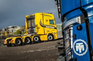 This one has been a long time coming. Incredibly it’s almost four years since HeavyTorque featured Blantyre-based specialist Cadzow Heavy Haulage as it undertook the move of a large boat in Glasgow during the night. Transport manager Jim Ritchie was instrumental in organising both the move and photography. Around the same time, Ritchie and his colleague and friend Campbell Stewart were rewarded by the company for 30 years of service each. Freelance truck writer, the late and dearly missed John Henderson, arranged to take both to the Transport News Scottish Rewards breakfast that year and it was subsequently arranged for HeavyTorque to run a profile on Ritchie. Then the covid pandemic hit before anything could be arranged and everything was put on hold. Until now.
