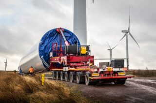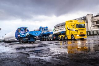 Part of its success is keeping investing for the future and sourcing its trucks, trailers and equipment from several manufacturers – specifying what it sees as the best equipment for its wide range of specialist transport operations. In the last 20 years it has been very active in the wind energy sector, investing in very high specification equipment to take up the challenge of transporting the relevant turbine components to all manner of remote locations. The ever-growing size of wind turbines require special techniques and equipment that is continually evolving to cope with bigger, taller, heavier tower sections, larger, heavier nacelles and blade sections that seem to get longer than ever.